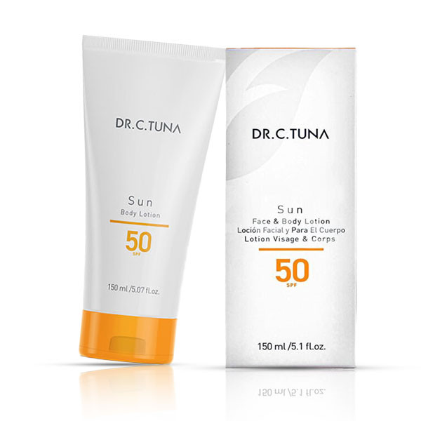 لوسیون ضد آفتاب صورت و بدن از لاین دکتر سی تونا فارماسی مناسب انواع پوست صورت و بدن با +SPF50، دارای فیلترهای حفاظتی بسیار قوی می باشد که از پوست در برابر اشعه های UVA و UVB محافظت می کند. این کرم دارای فرمولاسیون گیاهی و حاوی عصاره روغن بائوباب و تامانو میباشد که موجب پیشگیری و رفع لک های پوستی، رطوبت رسانی عمقی و طولانی مدت، ضد حساسیت و قرمزی، کند کردن روند پیری پوست، جلوگیری از ایجاد آکنه و حفاظت بالا از پوست در برابر اشعه های خورشید میشود.