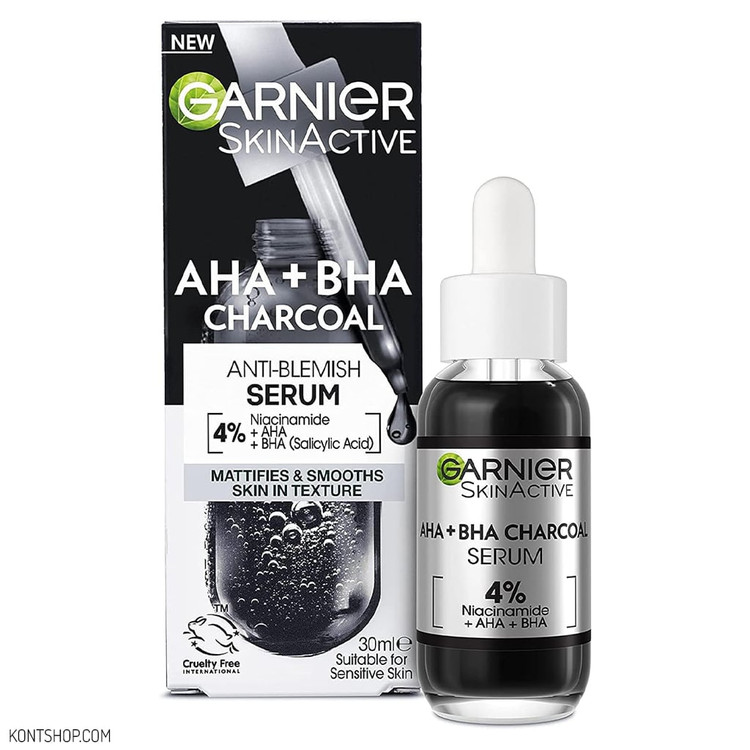 سرم زغالی ضد جوش و لک گارنیر 30 میل عیوب پوستی را به نحو احسنت از میان خواهد برد. ظاهری بسیار درخشان و بدون نقص را به شما هدیه مینماید. سرم زغالی گارنیر غنی شده با AHA + BHA و بسیاری عناصر مورد نیاز پوست میباشد. بصورت استفاده لایه برداری و منظم، جوش های سر سیاه را نابود کرده و منافذ پوست را کوچک خواهد کرد. این سرم زغالی بهره مند از 4٪ نیاسینامید، AHA، BHA میباشد.